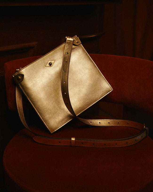 Presented in collaboration with ISSIMO - an extension of the Hotel Pellicano world and the exquisitely curated purveyor of all things chic and Italian - this exclusive capsule was inspired by a reverence for glamorous summer nights from the heyday of Italian disco. Featuring shimmering metallic tones, handcrafted calfskin handbags and small leather goods glitter in gold and silver hues.