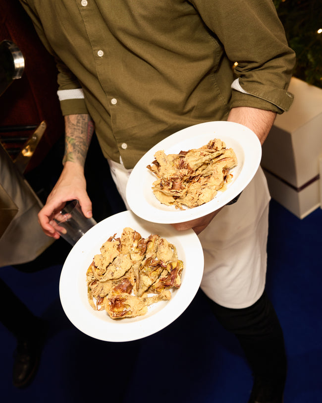 Guests were greeted by glasses of sparkling rosé and a band of warm hellos. Tempting trays of pizetta and artichoke fritti circled about the room, charming their way into each passing conversation.