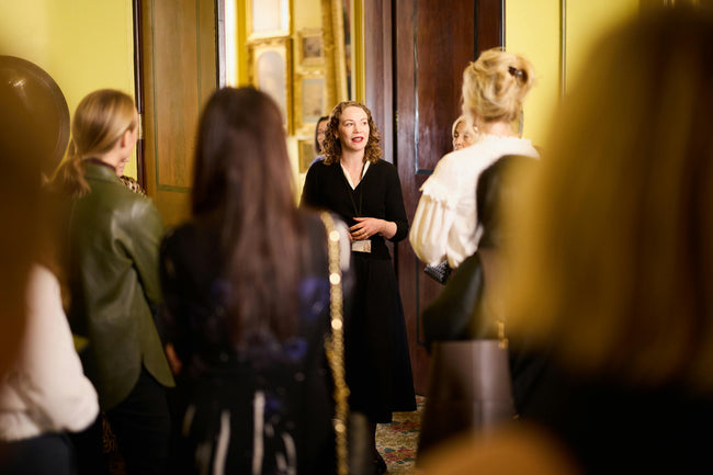 A thoughtful guest list of 32 women - makers, supporters, and collectors of art - were welcomed to the afternoon soirée with coupes of champagne in the museum’s cheerfully-hued drawing room.