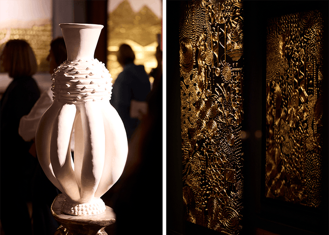 The opportunity to see Viktor’s range of gilded, sculpted and painted works up-close proved to be a rare treat even for art-industry insiders like The National Portrait Gallery’s Victoria Siddall, Salon 94’s Jeanne Greenberg Rohatyn, Chisenhale Gallery’s Zoé Whitely, ARoS Art Museum’s Isabelle Maidement and more.