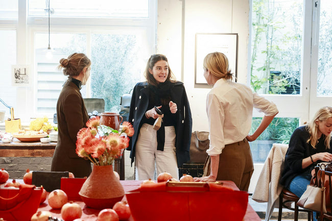 Located just a stones throw from Métier HQ on South Audley, Farm Shop, of Audley Pub and Fife Arms fame, served as the ideal venue to host. Delicious purveyors of everything natural and fresh; fruits, veggies, bread, cheese, meats, and wine, we felt their ethos meshed well with the brightened mood of our latest collection.