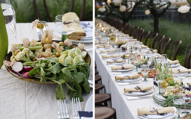 Further bringing the South of France to the Hamptons, yellow napkins and green Roemer glasses added touches of colour to the table, in true Alexander Calder spirit.