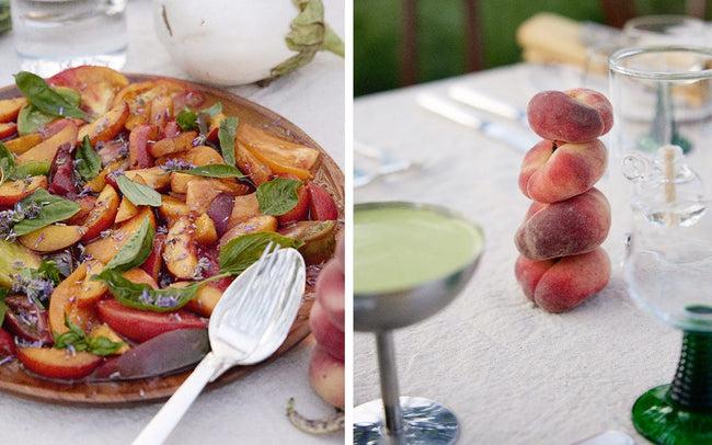 Tomato and peach salads were served, along with varieties of summer crudités, as well as focaccia and striped bass, and an effusion of seasonal fruits for dessert.