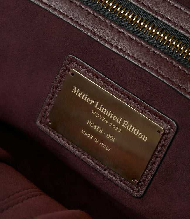 Woven by hand in an atelier outside of Florence, the Meribel Woven pays homage to Charlotte Perriand’s beloved chalet in the French Alps. The intricate tapestry, entirely made of leather, bears a rich grain and subtle shine, and is carefully crafted for a hardwearing durability while still maintaining Métier’s signature, and coveted, slouch.