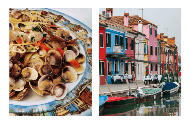 If you want to escape the hustle and bustle of Venice, we recommend that you charter a Riva and head to the island of Burano and its dream of a restaurant Al Gatto Nero. This is Italian family cooking at its best; the parents Ruggero and Lucia are in the kitchen making locally sourced “lagoon cuisine” whilst their utterly charming son Massimiliano (who speaks English with an Italian-Glaswegian accent!) takes care of their lucky guests. The menu changes daily based on what seafood and vegetables they have found in the market that day. Simply divine.