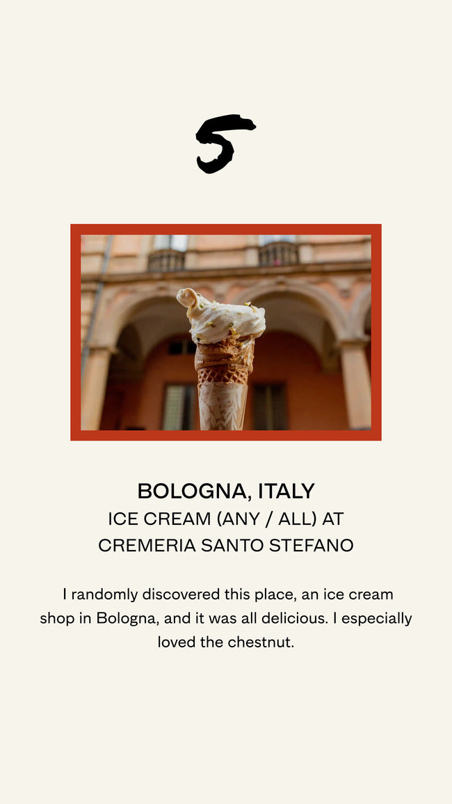Specialising in food as her creative medium, the internationally-renowned artist Laila Gohar recommends her favourite gastronomic delights from her worldwide travels. Behold her six favourite bites from six different countries.