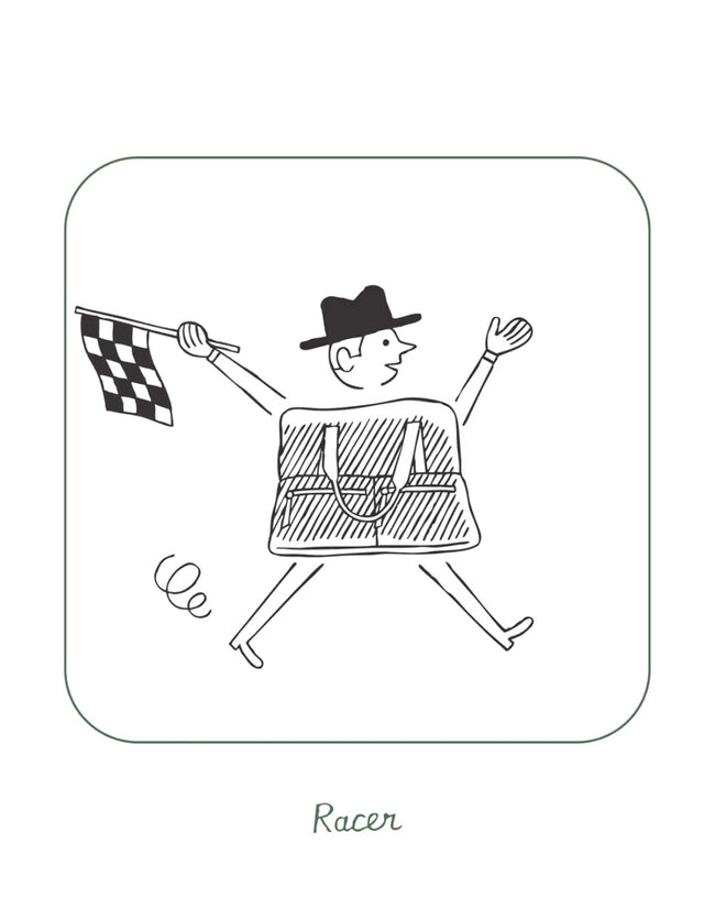 Each season, we turn to the talented illustrator Jochen Gerner to bring our bags to life. This year’s ‘Holidériers’ include a martini-balancing Ease, a poised Parallel, a sporty Racer, and more – in addition to Milo Métier, our Zelig-like travelling mascot who pops up in games and puzzles throughout the Zine.