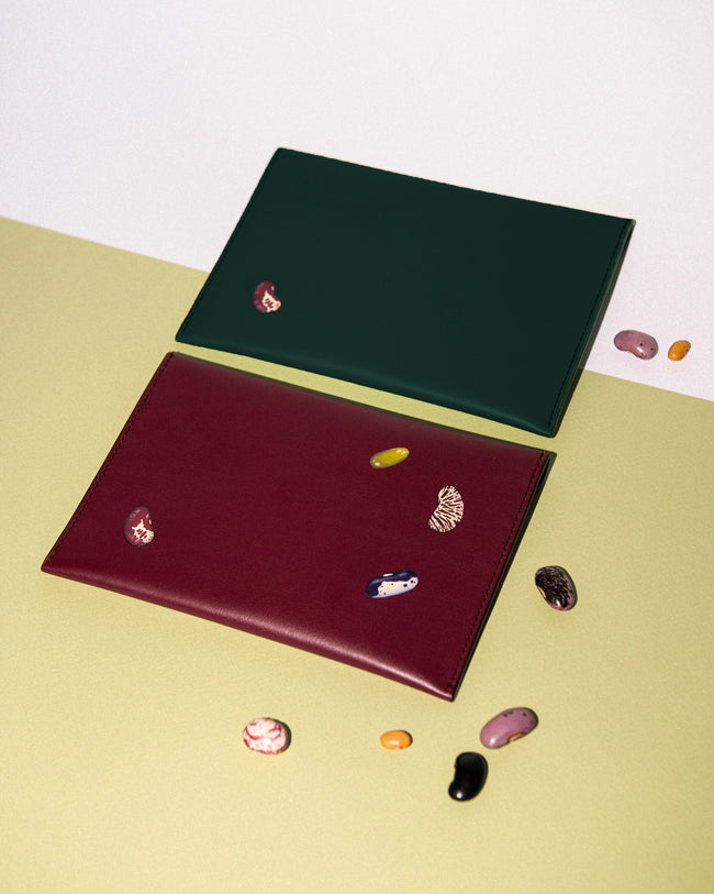 Inspired by farmers’ produce and heirloom beans, Métier x Gohar World is a limited edition capsule of our signature design language reimagined through Laila and Nadia Gohar’s tableware universe of craft, tradition and humour. Infused with vegetable-focused hues and hand-painted bean motifs, the collection is comprised of the highest quality leathers and suedes brought to life by our skilled artisans in Italy with hand-painted motifs created in New York City by the Gohar World team.