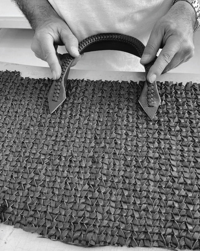 Working in our Italian atelier, artisans weave thin strips of leather in an intricate tapestry that is later mounted on our Vérité bag – a meticulous four month process that results in unique, one-of-a-kind pieces.