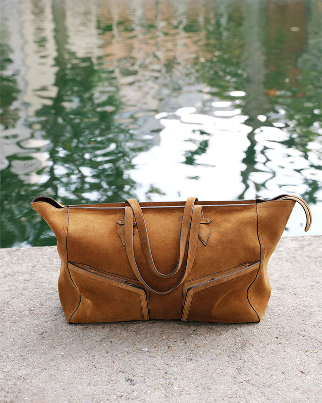 This oversized yet lightweight carryall is handcrafted in Italy with distinctive architectural lines and a perfectly slouchy shape. An ideal travel bag for overnight and weekend, fitted with an arsenal of organisational pockets.