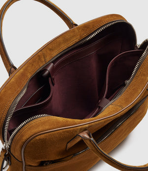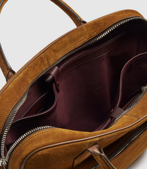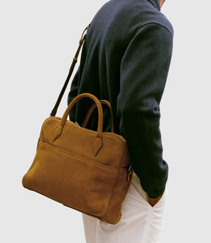 The calibre of our signature Italian suede is apparent in its softness and durability. Hardwearing even in poor weather – it was historically the preferred livery of cowboys after all – our suede is further strengthened by a special treatment to avoid pilling and fibre loss. The natural signs of wear that develop over time can be seen as a testament to the miles your bag has travelled.