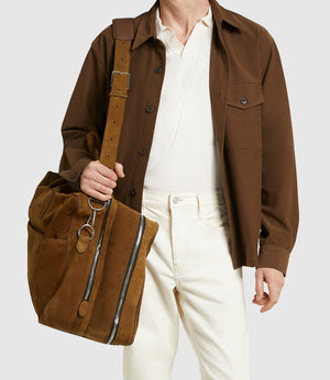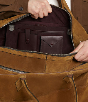 The calibre of our signature Italian suede is apparent in its softness and durability. Hardwearing even in poor weather – it was historically the preferred livery of cowboys after all – our suede is further strengthened by a special treatment to avoid pilling and fibre loss. The natural signs of wear that develop over time can be seen as a testament to the miles your bag has travelled.