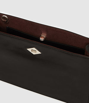 A more spacious version of our signature Ease evening clutch, with room for your essentials and more. Designed with the same clever compartments as our Ease – including a discreet pocket for your phone – plus more space for your keys, a small wallet and sunglasses. A detachable leather strap allows you to carry it on your shoulder or crossbody. Finished with solid brass detailing.