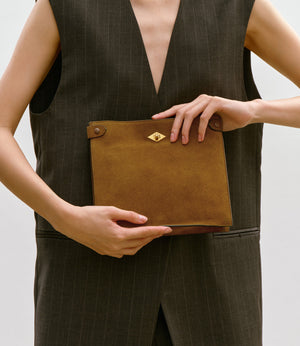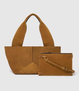 Fashioned with a twisted base to create a slouchy comfortable-against-the-body shape, supple, wide handles further allow for an easy carriage as you move through your day. Featuring an internal pouch that clips out to function as a crossbody bag as well as a myriad of useful compartments on the interior and exterior granting a scale to prioritise your belongings according to which you need access to the quickest.