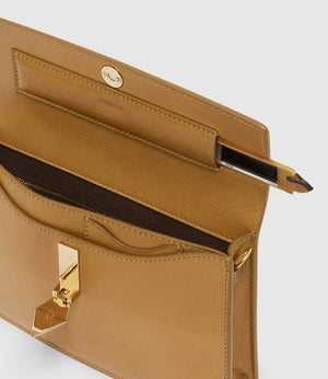 The Parallel 22 is the ideal handbag for day-into-evening, designed with myriad internal compartments and special details – from an easy-to-reach cardholder to a handy hidden mirror. Finished with a diamond-shaped clasp in two-toned gold and silver.