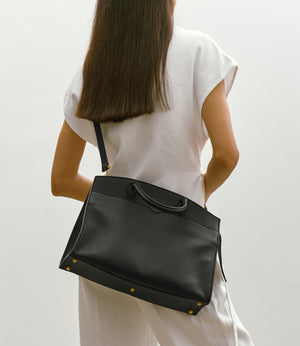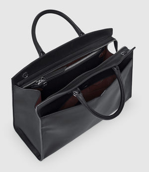 The Pendulum 36 is an elegant solution for work and everyday, featuring a pared-back design and minimal seams for a featherlight construction. Métier’s signature diamond motif appears in distinctive details, from the bag’s diamond-shaped handle points to a geometric notch in the front exterior pocket.
