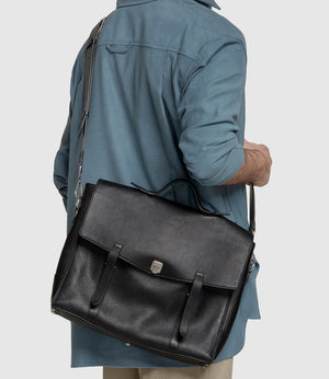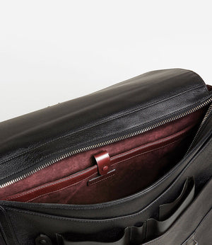 Handcrafted in Italy, the Rider Briefcase is a laid-back style with a classic satchel silhouette. Its streamlined exterior conceals an arsenal of interior organisational compartments, including a 14” laptop sleeve and dedicated pouches for your passport, wallet, keys and much more. A discreet panel in back transforms from an extra pocket into a trolley loop for travel. Finished with solid brass hardware and a detachable shoulder strap.
