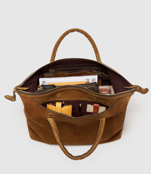 Our essential day bag, the Vérité City is classic, refined and extraordinarily lightweight, with room for a 14” laptop and much more. It features a discreet exterior magnetic pocket for easy access to your essentials, as well as an interior pouch that snaps out to become a smaller shoulder bag. Handcrafted in Italy with signature braided handles, solid brass hardware and a detachable shoulder strap. Formerly the Perriand.